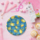 Plaques à papier avec les citrons jaunes zesty sautant sur un arrière - plan bleu vibrant de plaid, pour une table délicieuse d'été.
