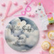 Bonjour bébé Cloud baby shower modèle assiettes papier personnalisées baby shower vaisselle. L'aquarelle gris nuage la police décontractée moderne.