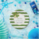 Plaque de papier mariage moderne avec motif rayé vert et blanc, cercle blanc au centre avec votre texte et trèfle ou shamrock. C'est un choix parfait pour votre table de mariage irlandaise ou douche nuptiale.