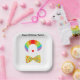 Célébrez dans le style avec ces plaques de papier d'anniversaire clown couleur arc-en-ciel brillant. Ils présentent une illustration d'une perruque arc-en-ciel, d'un nez de clown rouge et d'une cravate arc-en-ciel à pois jaunes. Ces fournitures de fête sont prêtes à être personnalisées avec votre propre message.