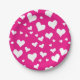 Assiettes En Carton Coeurs de balaie blanche sur Fuchsia rose