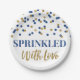 Saupoudrée d'assiettes d'amour pour bébé saupoudré de confettis bleu foncé et or motif.