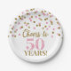 Assiettes En Carton Confetti rose or, 50 ans d'anniversaire