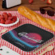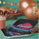 Ces amusantes plateaux de la fête de graduation à thème des années 80 présentent des graphiques rétro et une typographie chrome vintage sur un arrière - plan noir. C'est le design parfait pour une fête de remise de diplômes rétro.