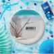 Plaques en papier avec une superbe photo. Eau bleue tropicale et surf mousse dans l'arrière - plan. Une collection de coquillages et de tiges s'étend sur une plage de sable blanc.