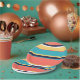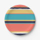Assiettes En Carton Corail vivant, rayures bleues et jaunes