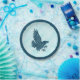 Une image simple et bleue d'un corbeau vivant (Corvus corax) de style norse-celtique, superposée à une image arrière - plan enneigée. Customisez en ajoutant votre propre texte à l'envers.