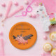 Un cochon en suspension, mignon et farci, vêtu d'un costume de corbeau semble voler. Le cochon est rose et habillé d'un bec jaune et d'ailes en plumes noires. L'assiette est faite en orange et noir et peut être personnalisée. Très mignon.