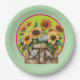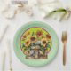 A Colorful Greens With A Country Sunflower Wooden Basket Of Flowers Round Paper Plate