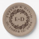 couronne de rose gaufrée vintage sur plaque de papier mariage de automne kraft rustique. Ce design mariage rustique se concentre sur un cadre de couronnes roses avec vos initiales brunes en relief.