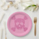 Ces assiettes de fête sont décorées dans un style gothique glamour. Une image d'un crâne et d'os croisés est imprimée au centre dans une parties scintillant rose sur un arrière - plan rose.