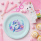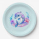 Plaques en papier avec une adorable illustration. Un dauphin bleu et violet entouré de jolis plantes sous-marins colorés.