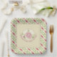 Assiettes En Carton Crème Bourgogne Rose Et Floral Vert