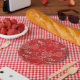Plat à motif rouge rubis et gris argenté avec des coeurs de dentelle doodle et des fleurs de cerisiers. Peut être une offre mignonne pour votre fête de la Saint Valentin, salle de classe ou fête scolaire Valentines, fiançailles, mariage, douche nuptiale ou baby shower!