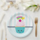 Assiettes En Carton Cupcake bleu mignon avec visage Kawaii