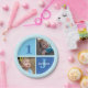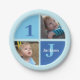 Cool 2 photo personnalisées plaque de papier fête d'anniversaire pour un petit garçon ou tout petit. Célébrez le 1er anniversaire de votre enfant avec de jolies photos d'eux sur ce ajouter votre propre design photo avec carrés bleu cool. Ajoutez leur nom et leur âge.