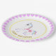 Plaque en papier encadrée de coeurs violets mignons et d'une mignonne licorne d'anniversaire au centre. Le texte "Joyeux Anniversaire" peut être personnalisé,