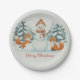 Assiettes En Carton Cute Foxes and Snowman Merry Christmas