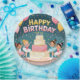 Cute Happy Birthday with balloons and ballerina dancers, cake and confetti.