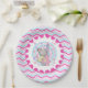Cute Mouse 4e anniversaire plaques de papier de fête comprend une souris grise dans une robe de soirée à pois jaunes et un casquette de soirée en vichy rose, un ballon d'anniversaire à pois lavande, un grand numéro rayé 4, étoiles, tourbillons, et des rayures de chevrons rose chaud, rose clair, bleu et blanc! Ces plaques de papier pour le quatrième anniversaire de la souris seront certainement un succès à toute célébration de 4ème anniversaire!