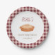Terminez votre anniversaire à tarte mignonne avec ces assiettes en vichy rouge personnalisées.