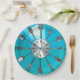 Il est temps de manger ! Un visage d'horloge bleu et aqua fait à partir de cuillères et fourches. C'est génial pour une assiette géniale ! Voyez que c'est une image de soeur rouge et rose 'Cutlery O'clock 2.'