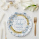 Assiettes En Carton Dainty bleu poussiéreux aquarelle fleurs or bébé