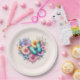 Paper plates with a beautiful illustration. A heart-shaped bouquet of flowers in pastel blue, green, purple and yellow. With a lovely blue butterfly hovering in front.