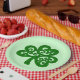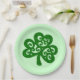 Ensemble de huit plaques de papier de 9 po avec l'image d'un trèfle blanc damassé sur vert clair. Voir la bocal à bonbons, tasse à expresso, flacon, tasse, pichet, verre à balles, théière et dessous de verre. Voir toute la collection de plaques de la Saint-Patrick dans le FOOD/BEV | Section Plats.