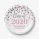 Classe de graduation personnalisable de 2020 assiettes en argent et en confetti rose glamour motif et élégante texte de style lettré à la main.