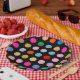 Disco Lights - colorful geometric dots in pink, yellow, green, blue and orange - black background