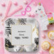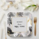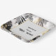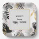 Il présente un design floral à feuilles printanières en noir, gris et or. Ces assiettes et serviettes correspondent à l'invitation à la douche dans le même design.