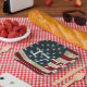 American Flag 1776 Juillet 4th Party Paper Plates. Célébrez le Jour de l'Indépendance avec ce drapeau patriotique des USA avec l'année 1776 dans la vieille typographie anglaise blanche. Le rouge, le bleu de la marine, et le blanc de l'extérieur Stars et des rayures Design. Commandez la vôtre aujourd'hui avec les serviettes correspondantes.