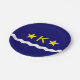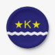 Plaque en papier design avec drapeau de Kinshasa, capitale de la République Démocratique du Congo, drapeau bleu à vague blanche, deux étoiles dorées et lettre "K" au centre