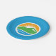 Plaque en papier avec un design avec le drapeau de Provo, Utah. Un drapeau bleu avec le logo de Provo City au centre. Le logo représente le lac de l'Utah et les sommets de montagne avoisinants avec le soleil levant en arrière - plan