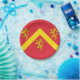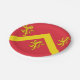 Plaque en papier avec design avec un drapeau du comté historique d'Anglesey, au Pays de Galles, Grande-Bretagne; drapeau rouge avec chevron jaune et trois lions; les bras attribués de Hwfa ap Cynddelw, l'insigne traditionnel du comté