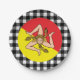 Plaques de papier : Plaques de fête rustique sicilienne avec drapeau sicilien, emblème de Triskelion entouré d'un motif de buffle noir et blanc - amour mon pays, décoration festive, patriotes nationaux / fans de sport