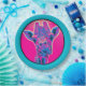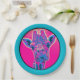 Une pose amusante d'une jolie girafe - qui sort sa langue ! Couleurs de néon gaies et amusantes de rose et de bleu. Amusant style pop art rétro des années soixante.