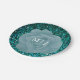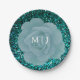 Assiettes En Carton Dusty Blue Rose Glittery Monogramme Mariage élégan
