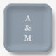 Assiettes En Carton Dusty Blue White Monograms Mariage initial élégant