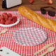 Assiettes En Carton Dusty rose checkerboard pattern