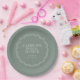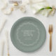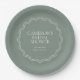 Parfait pour les mariages printaniers ou estivaux dans un jardin, ce design élégant présente une bordure ondulée en coquille sur un fond vert sauge poussiéreux. Personnalisez ces assiettes de mariage avec le nom de votre événement, la date et l'année.