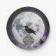 Cette conception présente une pleine lune sur un ciel étoilé violet, et un corbeau debout sur une croix celtique. Plaques de papier idéales pour toute fête d'Halloween ou de thème gothique,