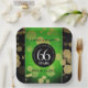 Fêtez leur 66e anniversaire de mariage en titanite avec ces assiettes en papier élégantes! Des lettres élégantes en noir et blanc avec des confettis hexagonaux dorés sur des arrière - plans indiens verts et noirs ajoutent une touche mémorable à cette occasion spéciale et à cette étape extraordinaire. Personnalisez avec le nom du couple et la date du mariage. Design © W.H. Sim, Tous droits réservés. Voir plus sur zazzle.com/expressionsoccasions