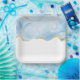 Plaques en papier d'anniversaire avec une belle agate bleue glacée avec des accents de parties scintillant en faux or.