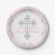 Assiettes En Carton Elégant croix d'argent rose Damas bébé fille Baptê