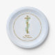 Assiettes En Carton Elégant Eucalyptus et Croix Bleue Première Communi