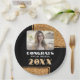 Félicitations Élégantes Parties scintillant d'or Graduate Plaques de papier photo. Plaques de remise de diplômes simples et élégantes portant le nom d'un diplômé et une photo. Le texte est en caractères gras. Le design a un faux détail de parties scintillant dorée. Vous pouvez customiser n'importe quel texte sur les plaques. Grandes assiettes personnalisées de remise de diplômes.