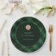 Elevate your holiday gatherings with our elegant Green Plaid Personalized Christmas Party plates. Design features a classic green plaid pattern, perfectly complemented by a dark circle frame at the center. A golden stag silhouette stamp adds a touch of sophistication, while the festive message, “Merry Christmas,” warmly invites the spirit of the season.