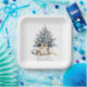 Assiettes En Carton Elégant Joyeux Arbre de Noël Or bleu Aquarelle